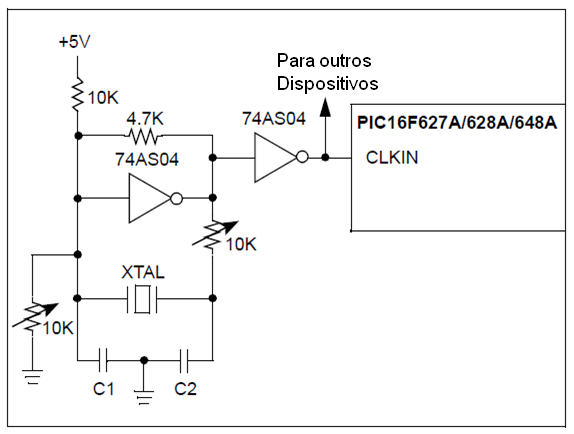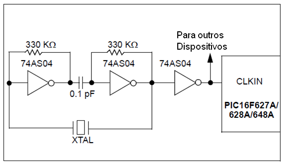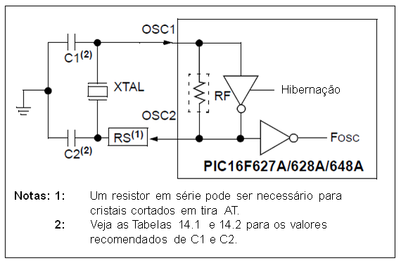Os microcontroladores PIC16F627A, PIC16F628A e PIC16F648A podem ser operados em oito diferentes opções de oscilador. O usuário pode programar três bits de configuração (FOSC2 até FOSC0) para selecionar um destes oito modos: