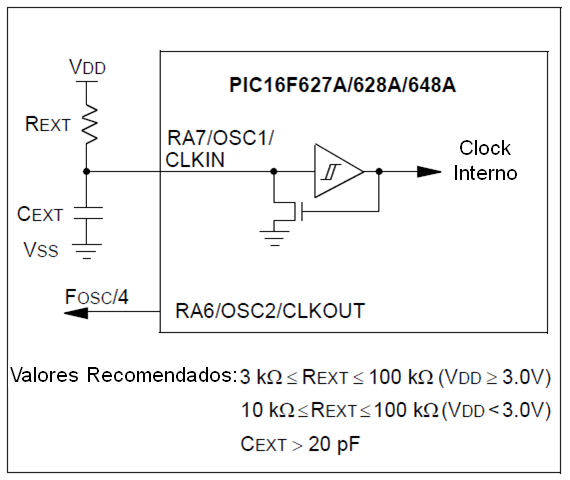 4: Quando o MCLR estiver no modo INTOSC, o oscilador do clock interno está desabilitado.