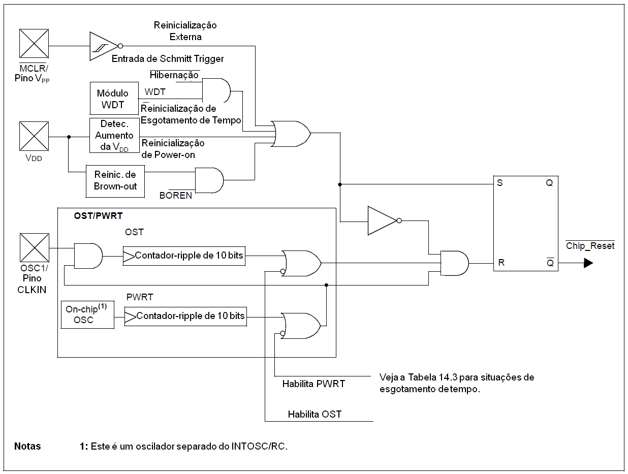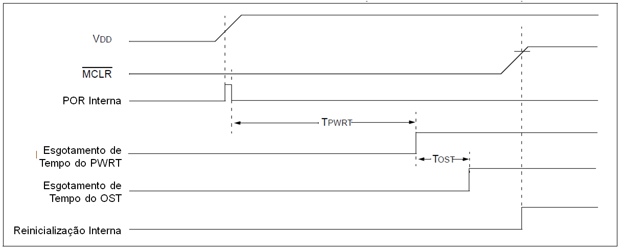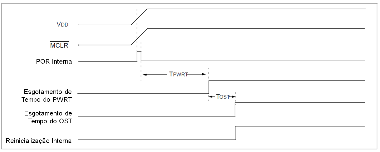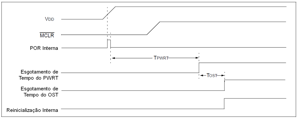 Deve-se notar que uma Reinicialização gerada por um esgotamento de tempo do WDT não conduz o pino MCLR para baixo.