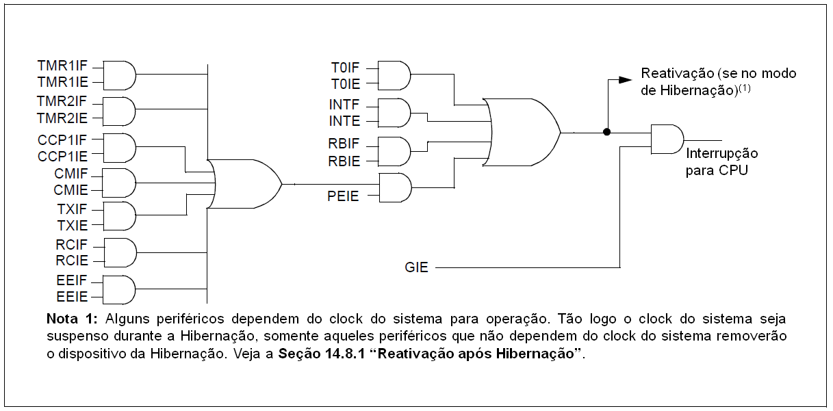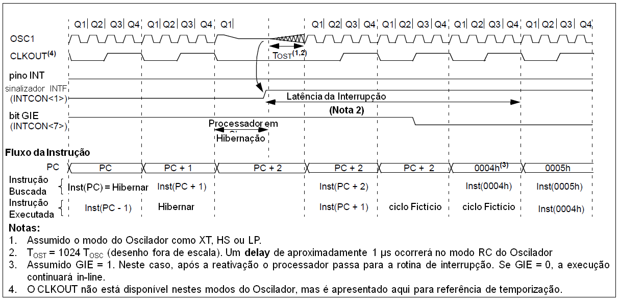 Interrupção a partir do pino RB0/INT, alteração da porta RB, ou qualquer interrupção periférica que esteja ativa na Hibernação.