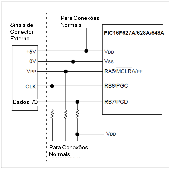 Uma típica conexão de Programação Serial In-Circuit é apresentada na Figura 14.18.