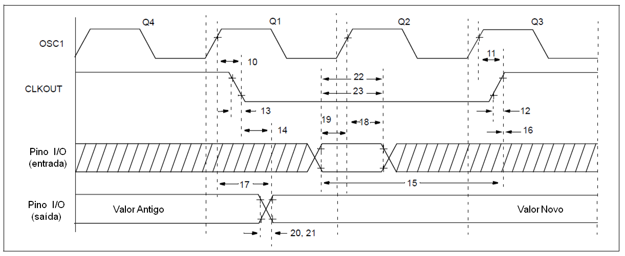 OSC1↑ (ciclo Q2) a Invalidação da Porta de Entrada (tempo de manutenção da entrada da I/O) |