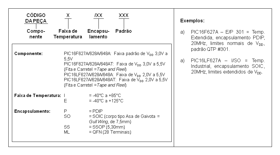 As diferenças entre os componentes PIC16F627A/628A/648A listadas nesta ficha técnica estão apresentadas na Tabela B.1.